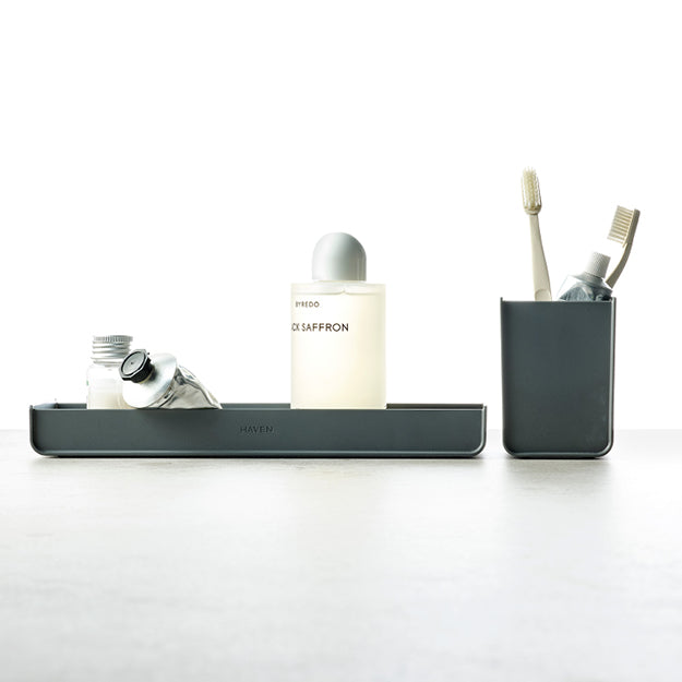 Keep your essentials organised with the flexible storage systems from Haven. A collection of trays and boxes made from non-toxic and naturally biodegradable materials, made from a combination of cornstarch and bamboo fibres.