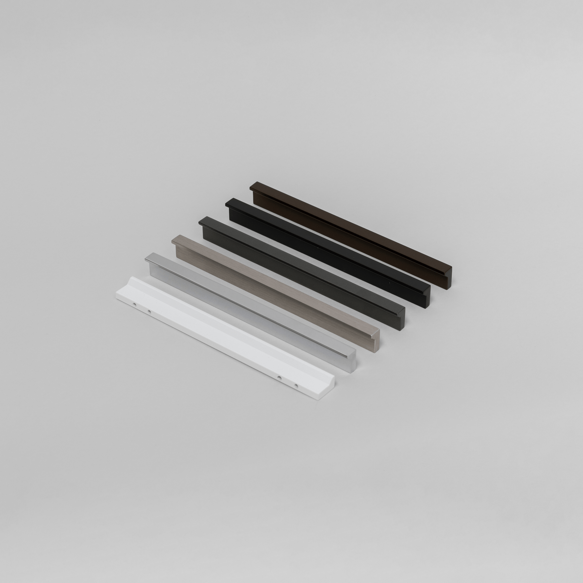 The Angle handle is made with an aluminium profile, and is characterised by its minimal straight lines. Available in brushed aluminium and also matte black and matte white obtained in a coating of the toughest, weather resistant paint. NEW metallic brown, metallic grey and polished chrome finishes now available.