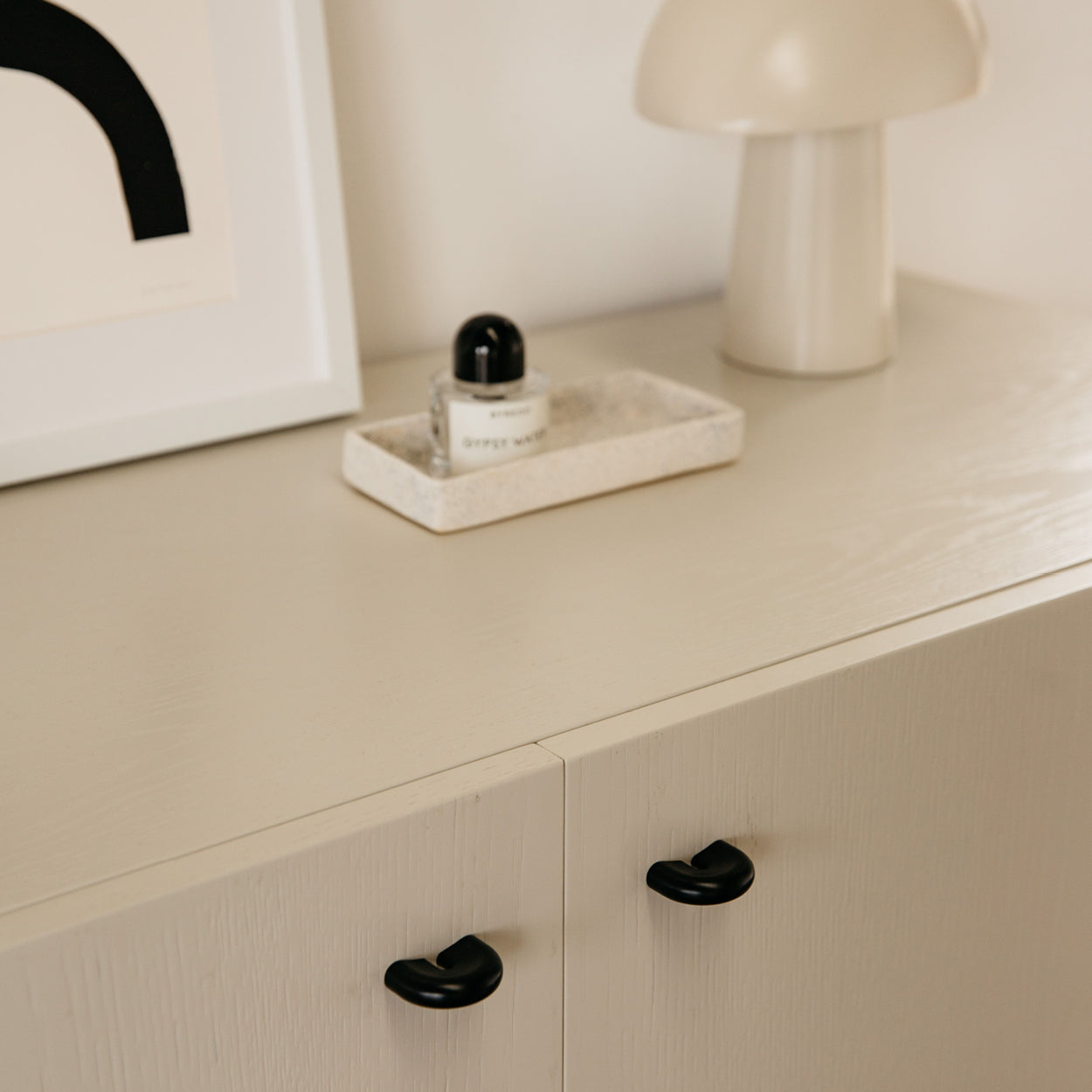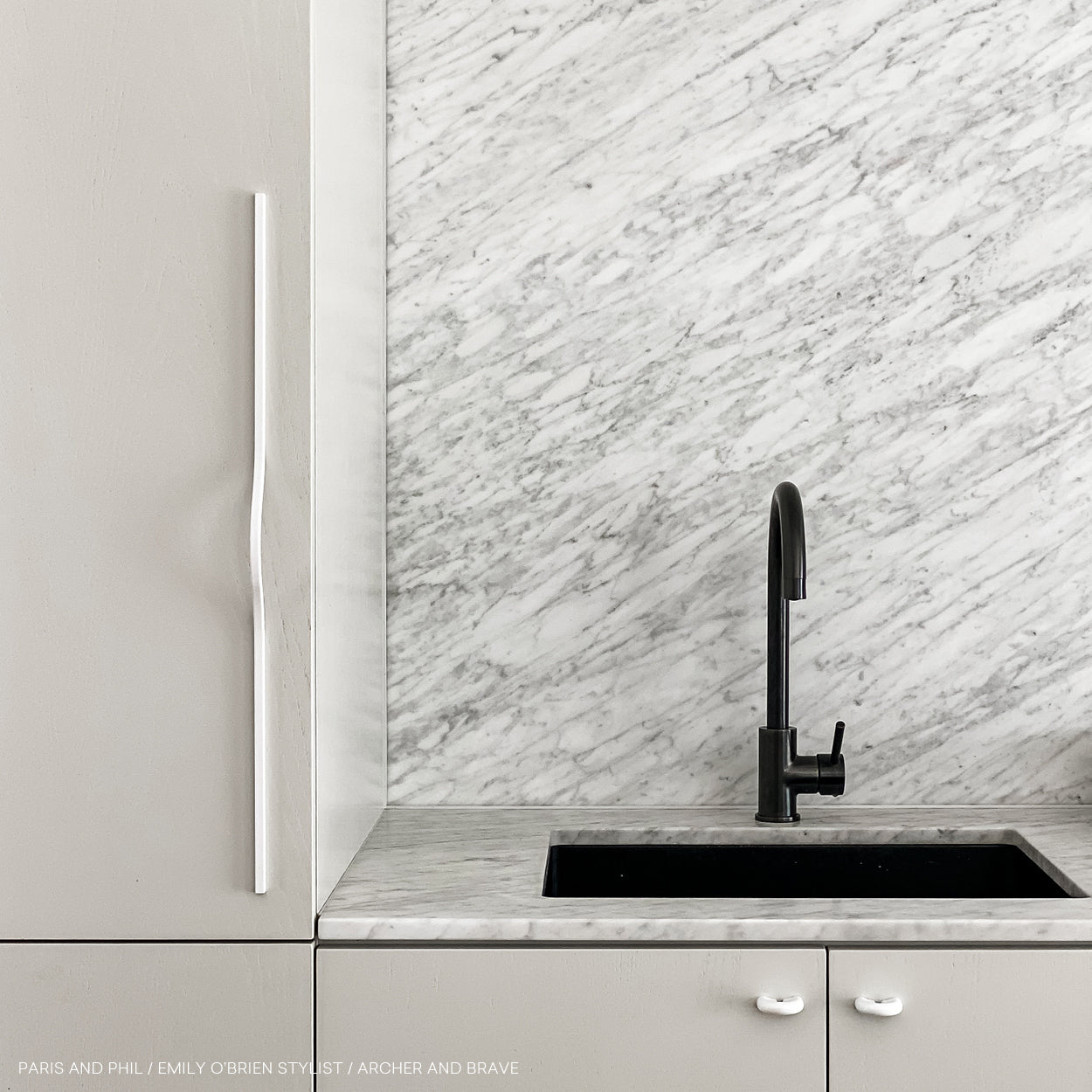 Meet Archer, one of our newest curved cabinetry knobs available in black, white and brushed nickel, and measuring at 40mm length.