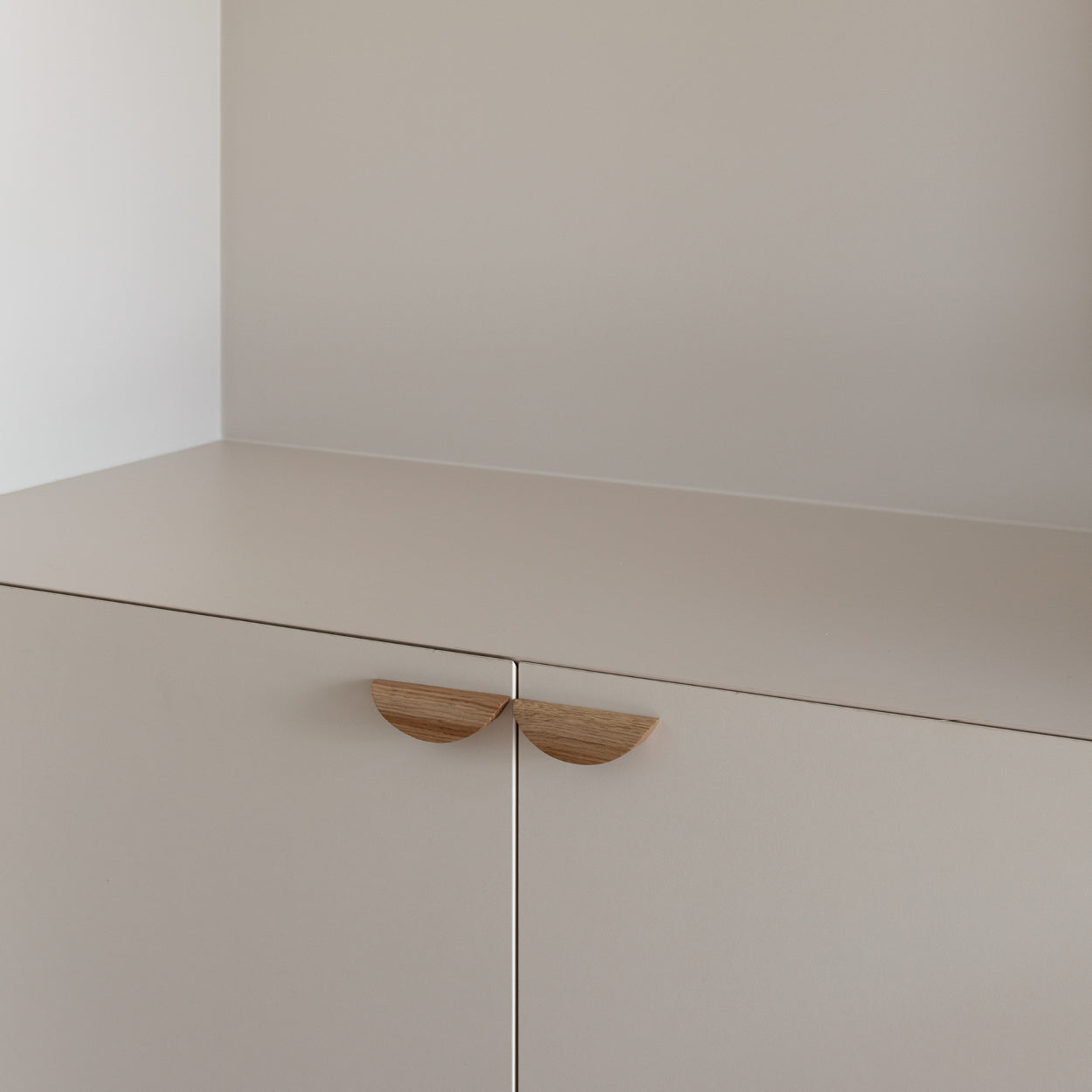 Archive is a timber handle with a curved profile. Available in five finishes and five lengths, including new smoked oak finish and new longer lengths of 592mm and 912mm. The Archive can also be supplied raw allowing for you to finish with your choice of stain / lacquer. We do not recommend installing the raw handle without applying a coating, as it is unfinished.