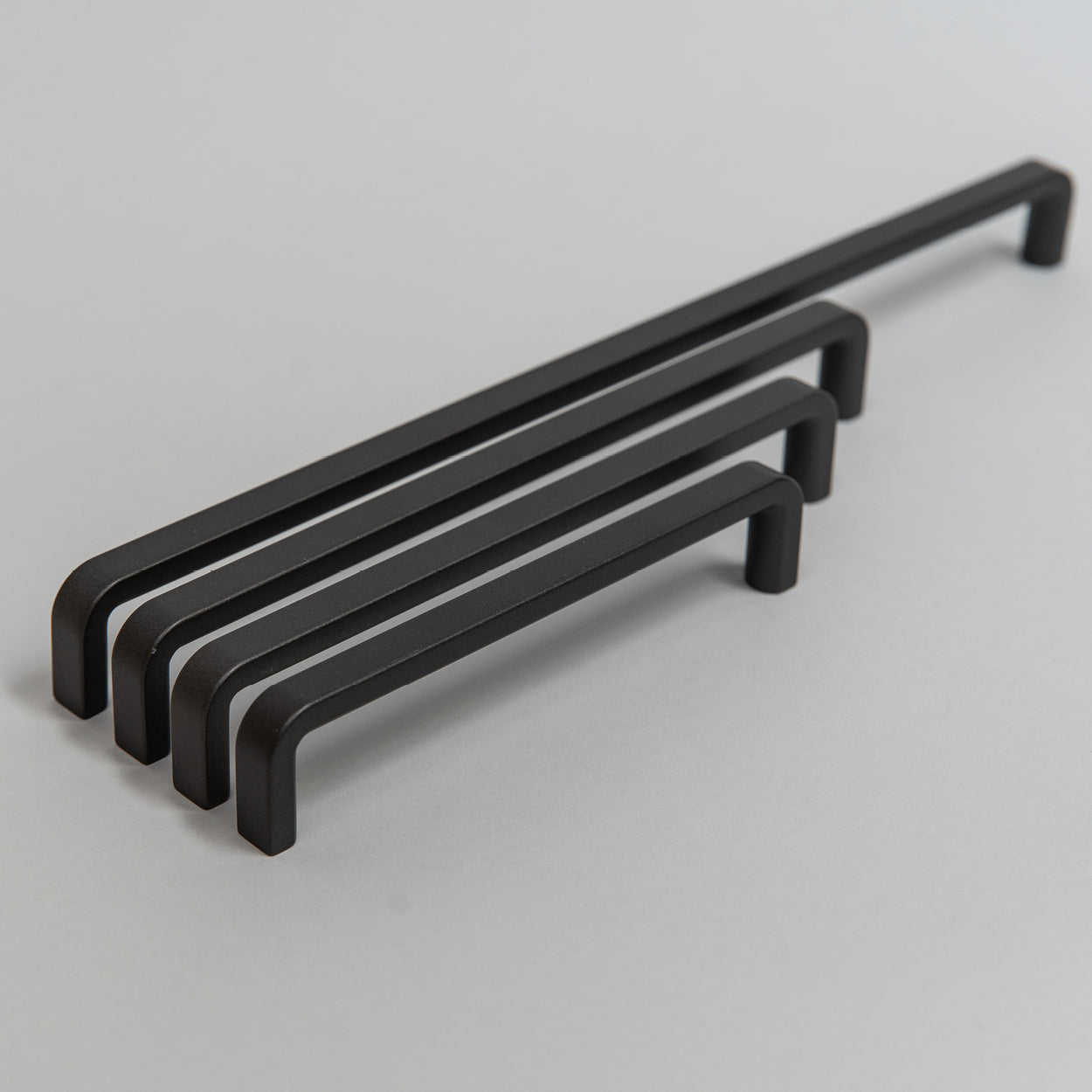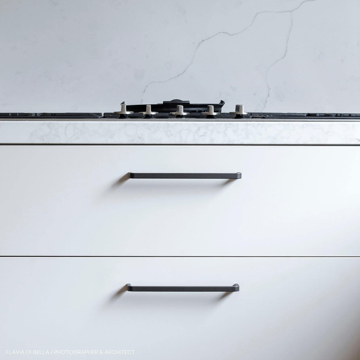 Byron is a slim handle available in gun metal finish. Can be paired with the Bell knob.
