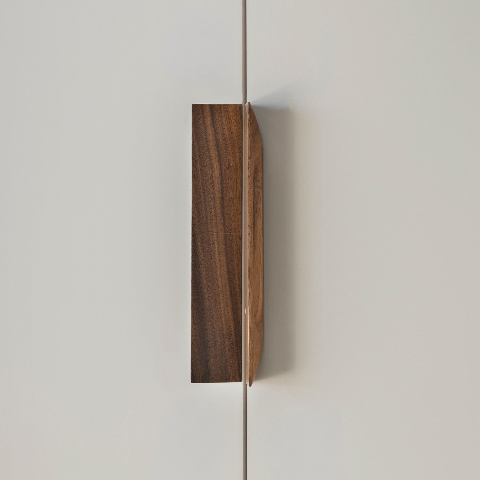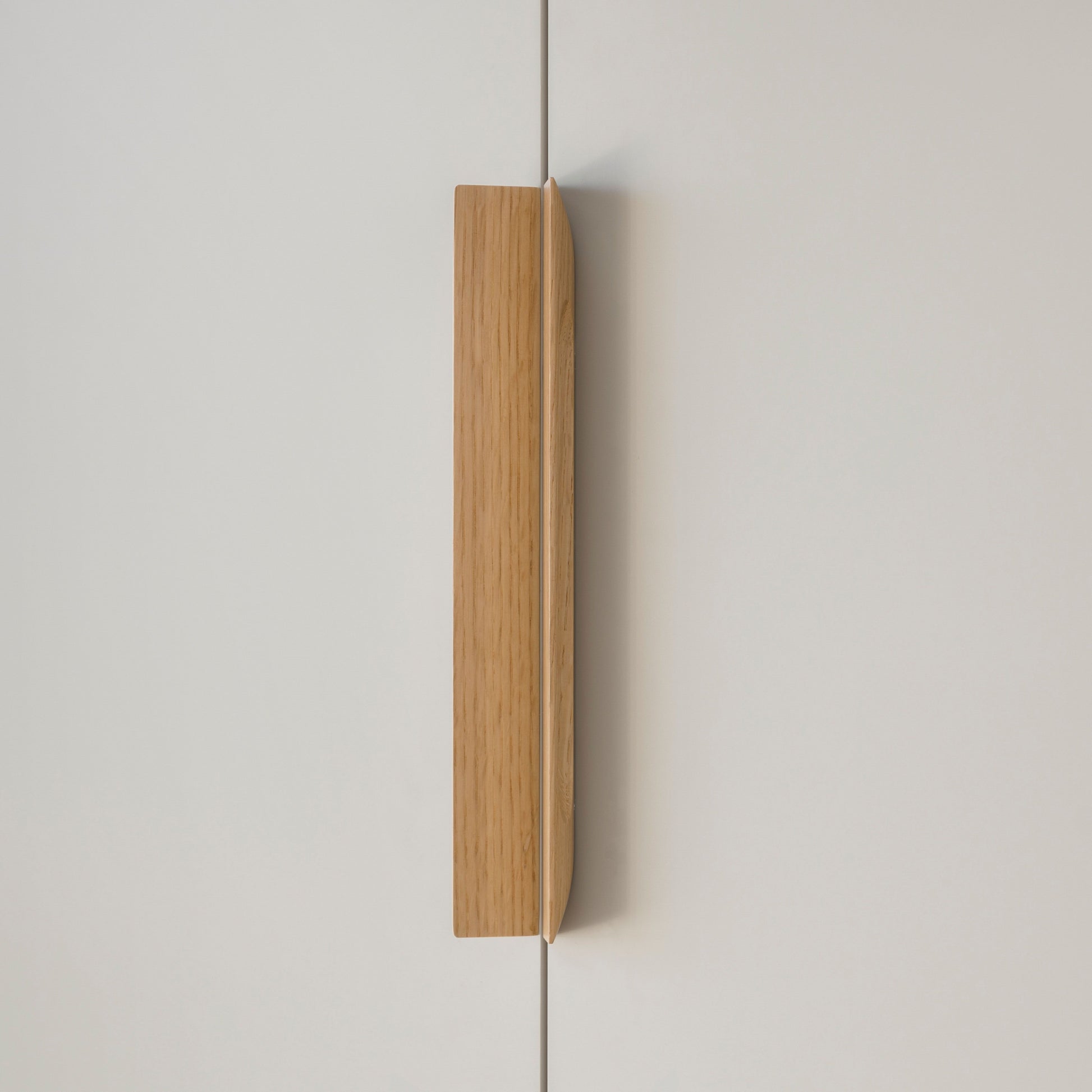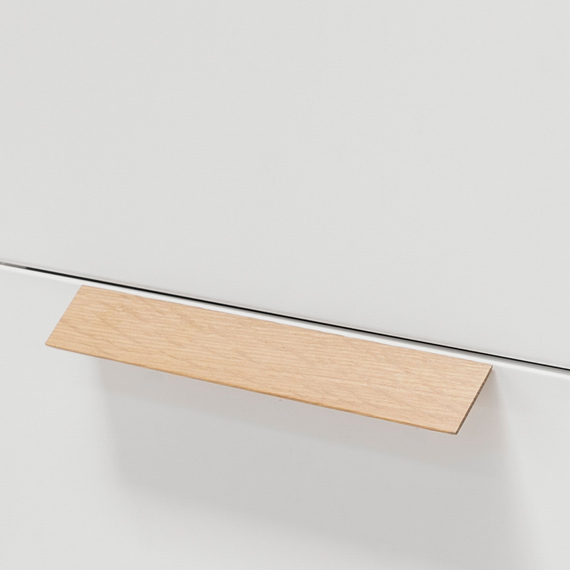 Chiselle is a timber slant handle, deceiving at first glance and although angular to sight its concealed carved finger pull is soft to touch. Available in three lengths and two finishes, oak and walnut.