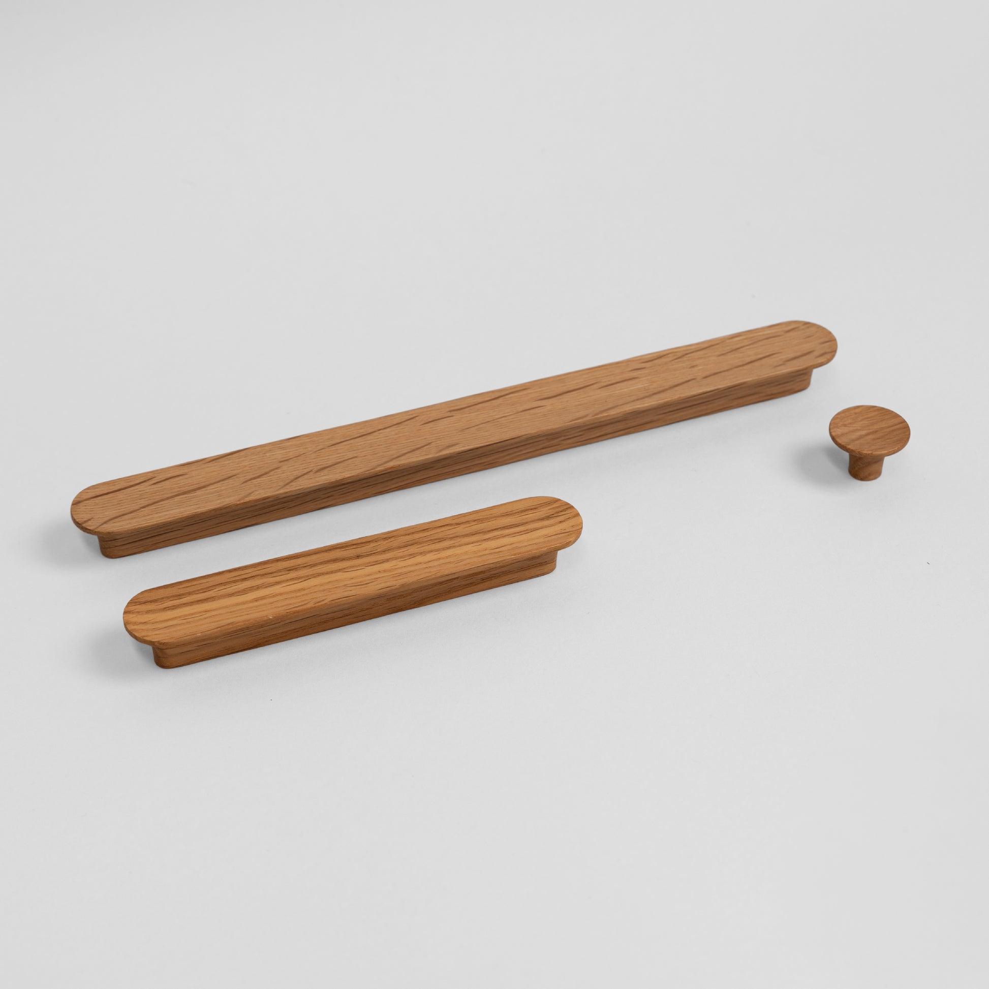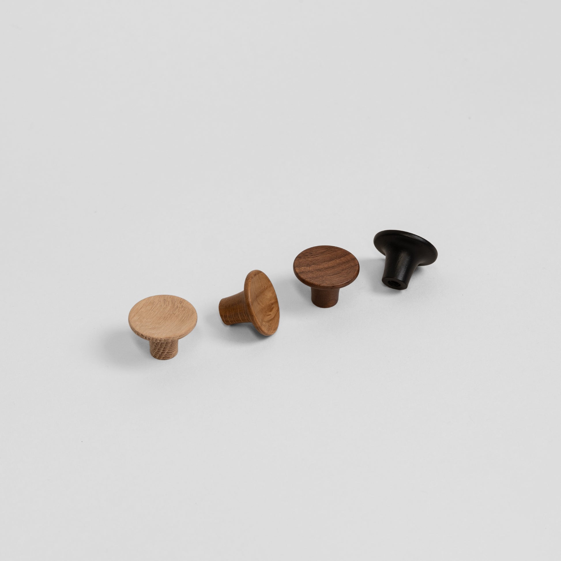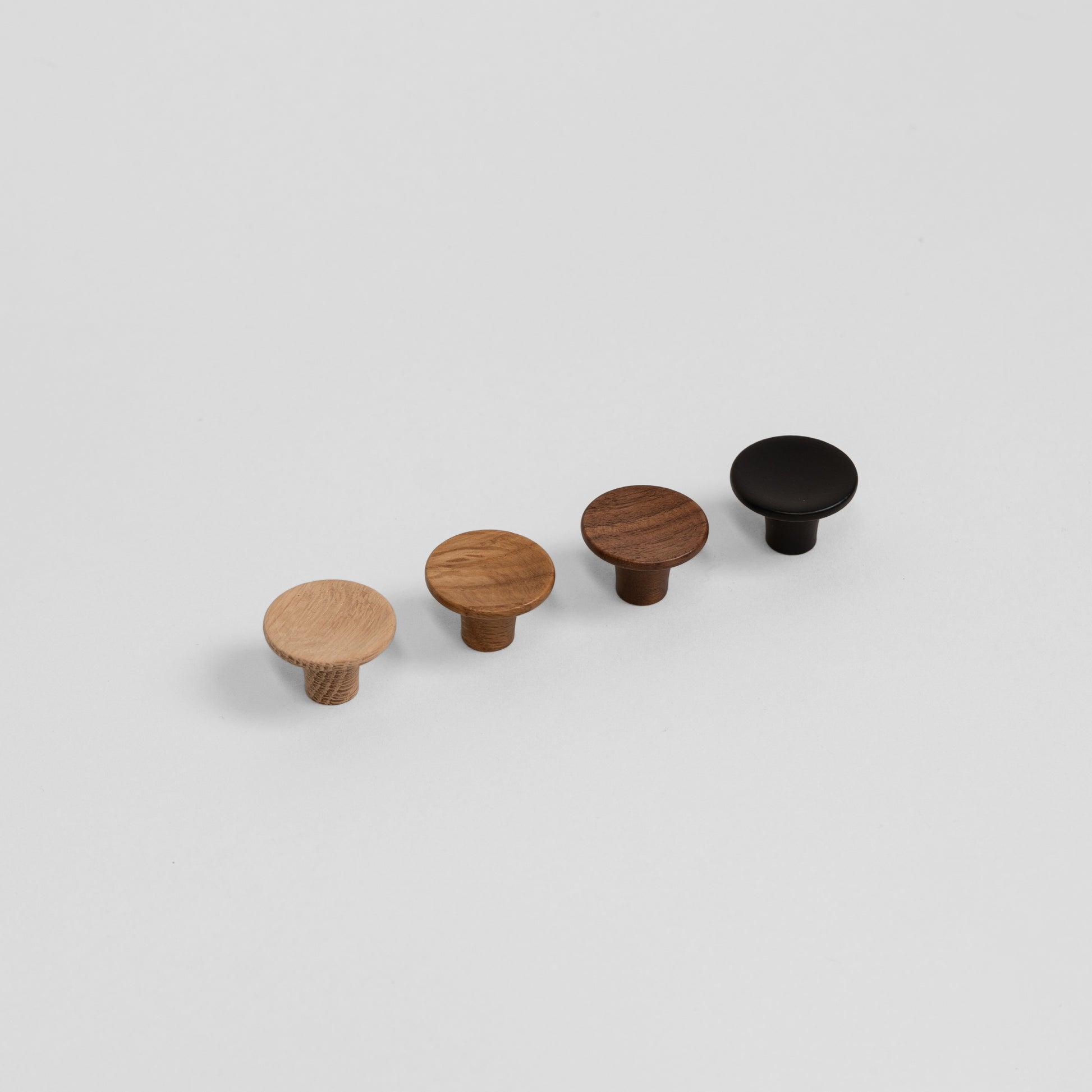 Frankie knob is a soft timber knob with a concave face that pairs with the Frankie handle. It is available in a 28mm diameter, available in three finishes oak, walnut and black stain. Now the Frankie can also be supplied raw allowing for you to finish with your choice of stain / lacquer. We do not recommend installing the raw handle without applying a coating, as it is unfinished.