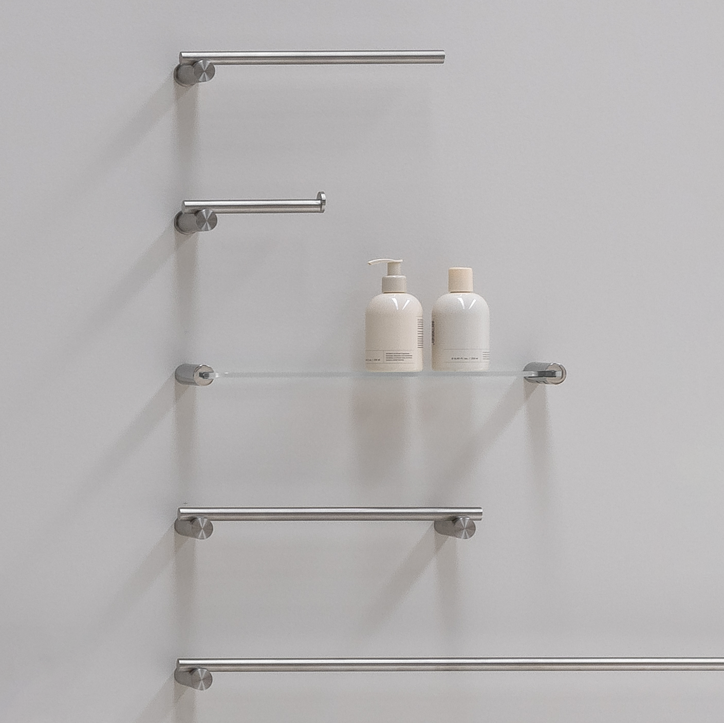 See also the Pillar Metal Shelf if you don't require wet area suitable shelving.