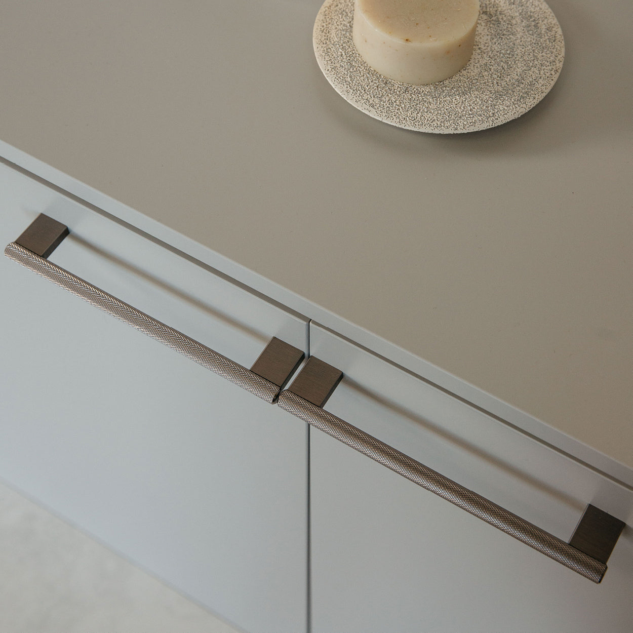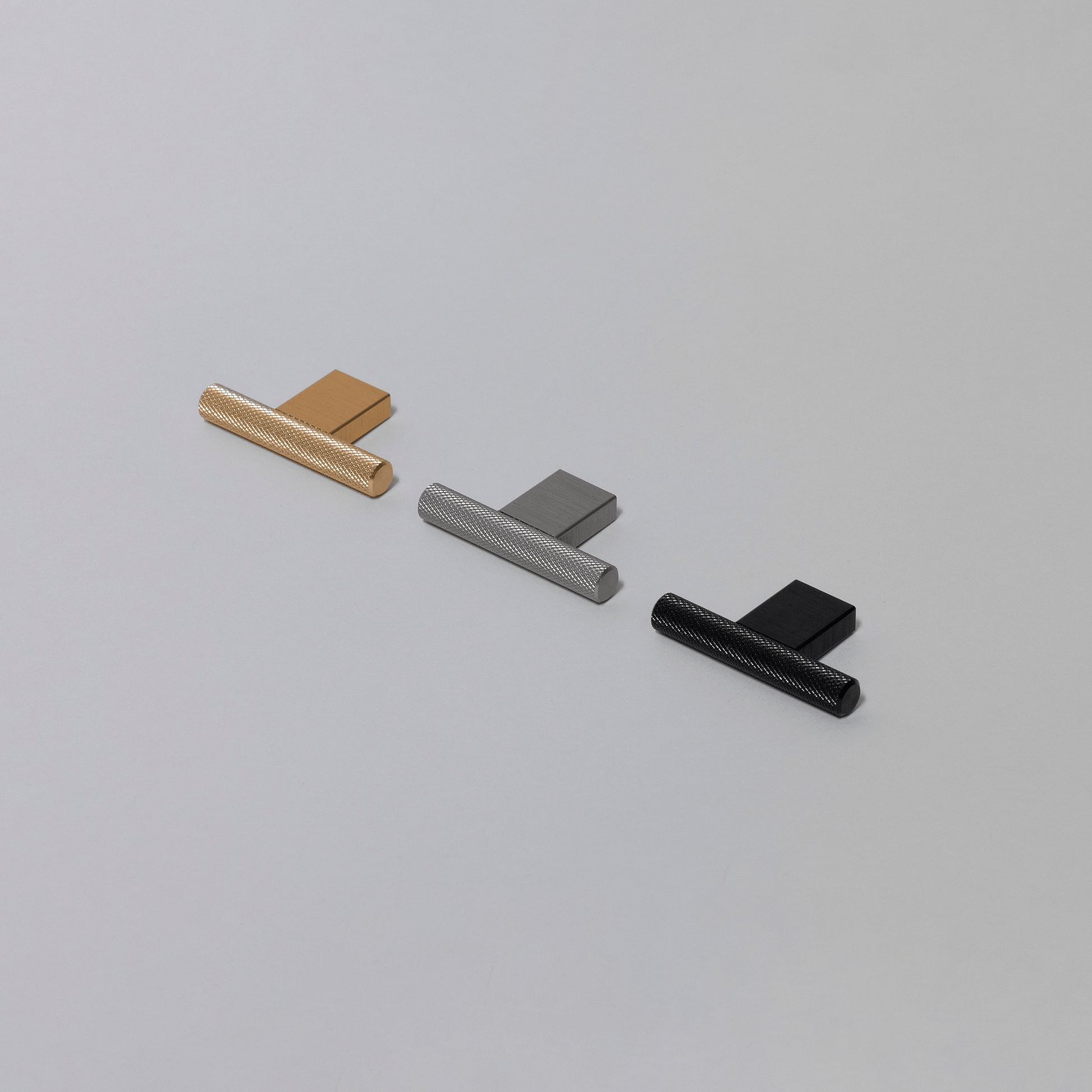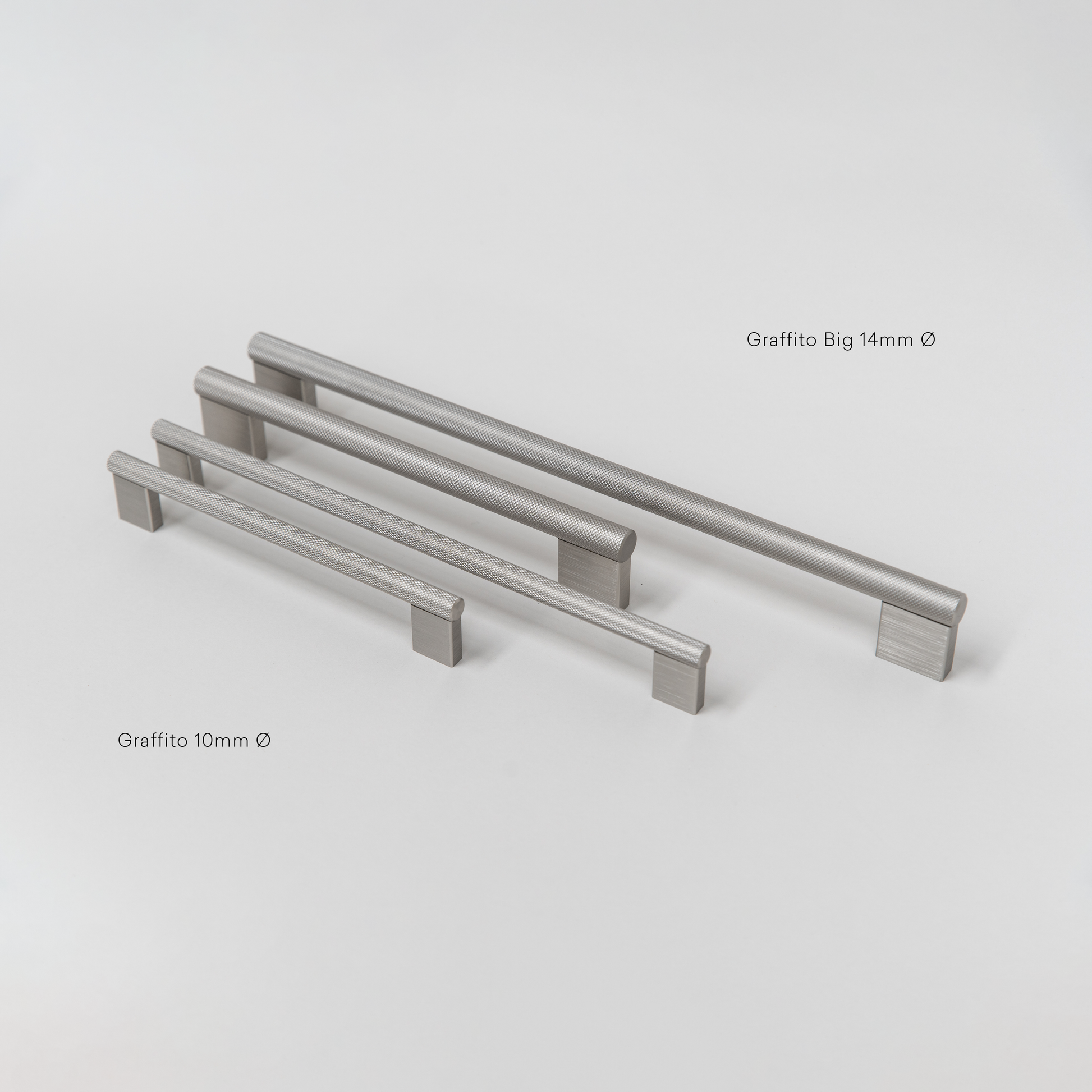 Graffito shares a similar textured mesh surface to our Graf knob, though defined by its narrowed and lengthened characteristics and a unique back fixing. A small pin sits near the screw fixing, which secures the fixing and prevents the knob from twisting as it gets used over time. Available in a new darkened brass finish, and also matte black and brushed aluminium. Electroplated finish. Check out the Graffito Big family for more sizes, and also the new Graffito Hook.