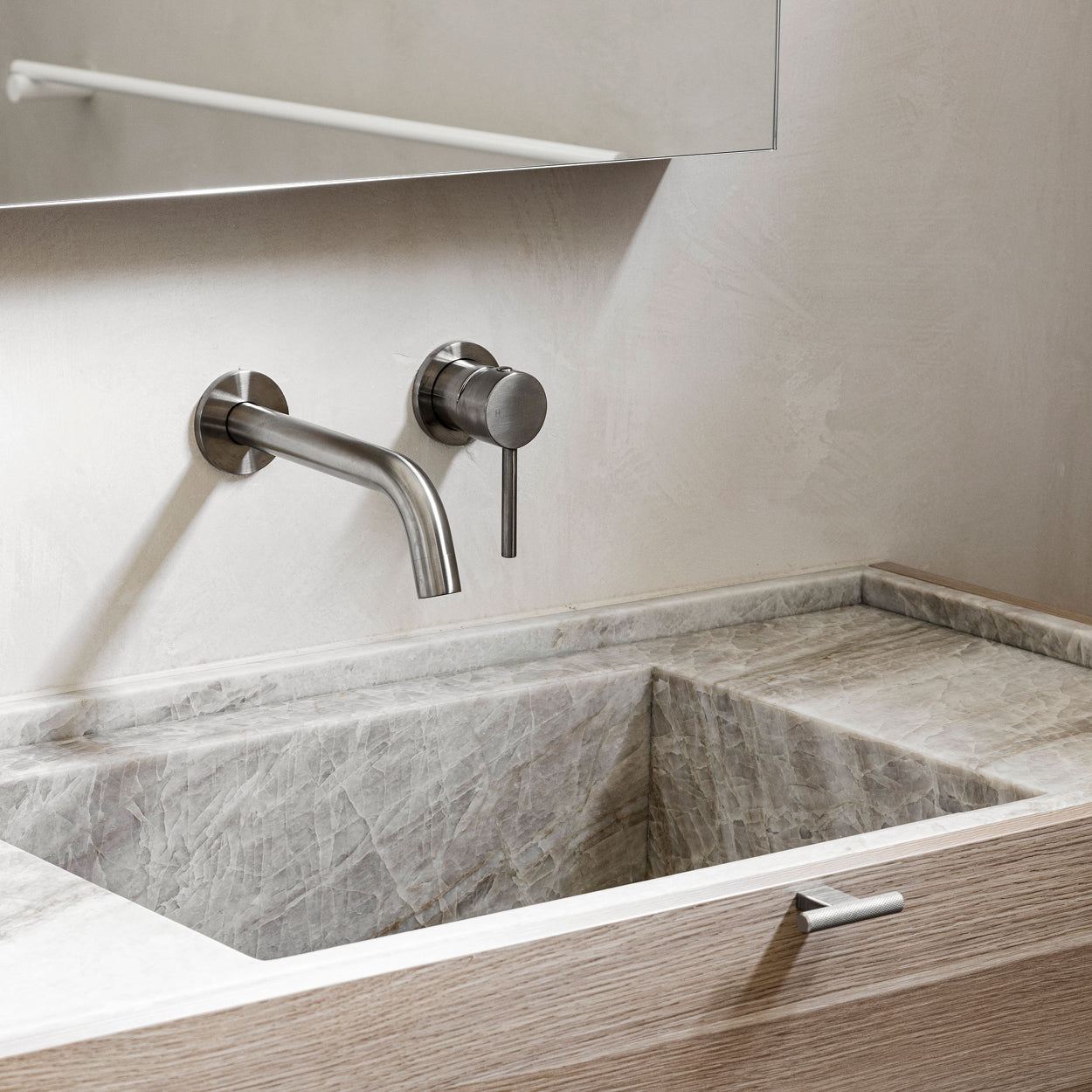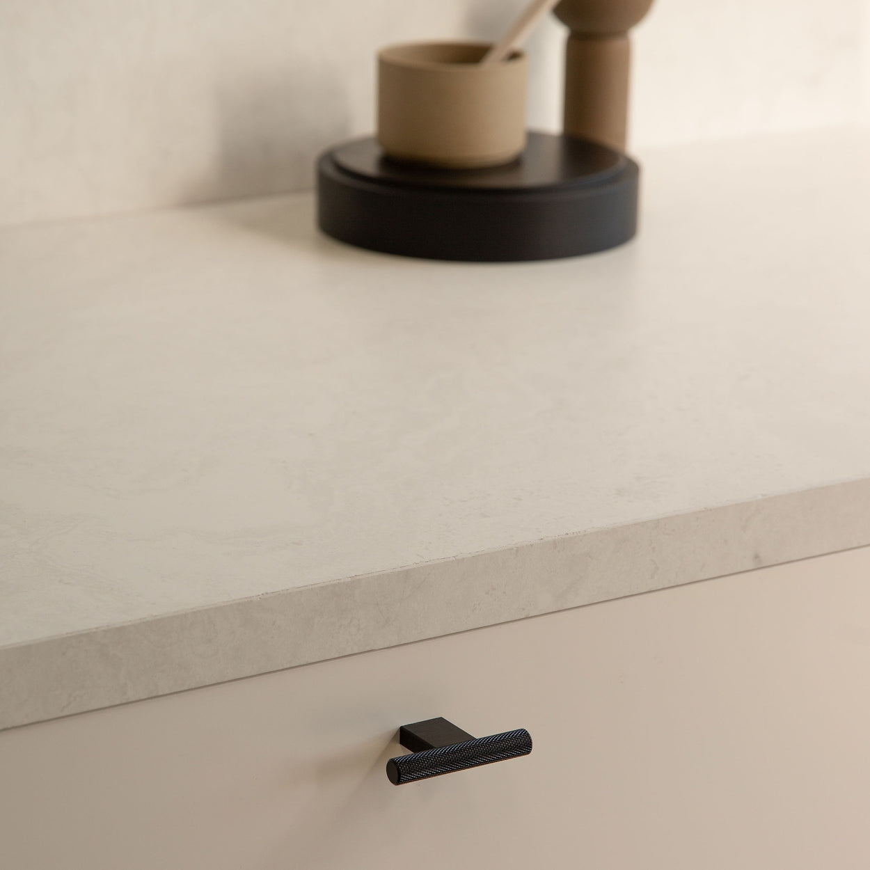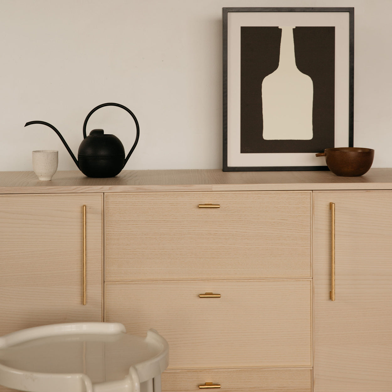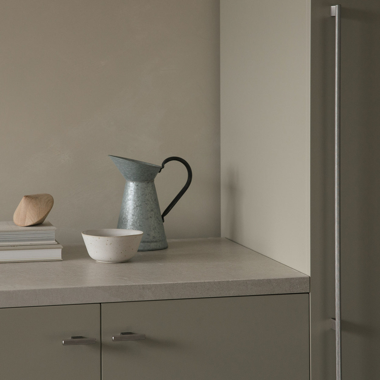 Graffito shares a similar textured mesh surface to our Graf knob, though defined by its narrowed and lengthened characteristics and a unique back fixing. A small pin sits near the screw fixing, which secures the fixing and prevents the knob from twisting as it gets used over time. Available in a new darkened brass finish, and also matte black and brushed aluminium. Electroplated finish. Check out the Graffito Big family for more sizes, and also the new Graffito Hook.