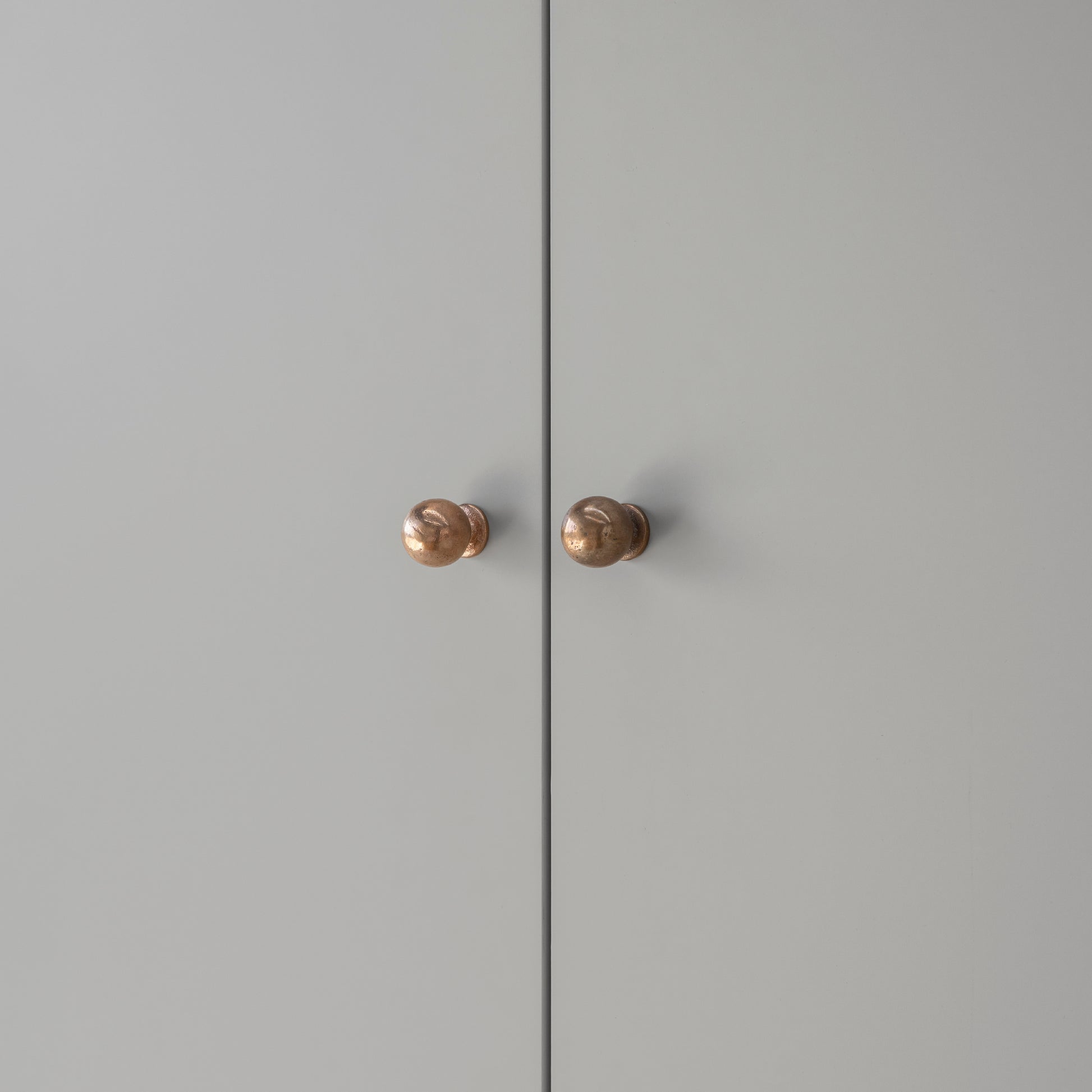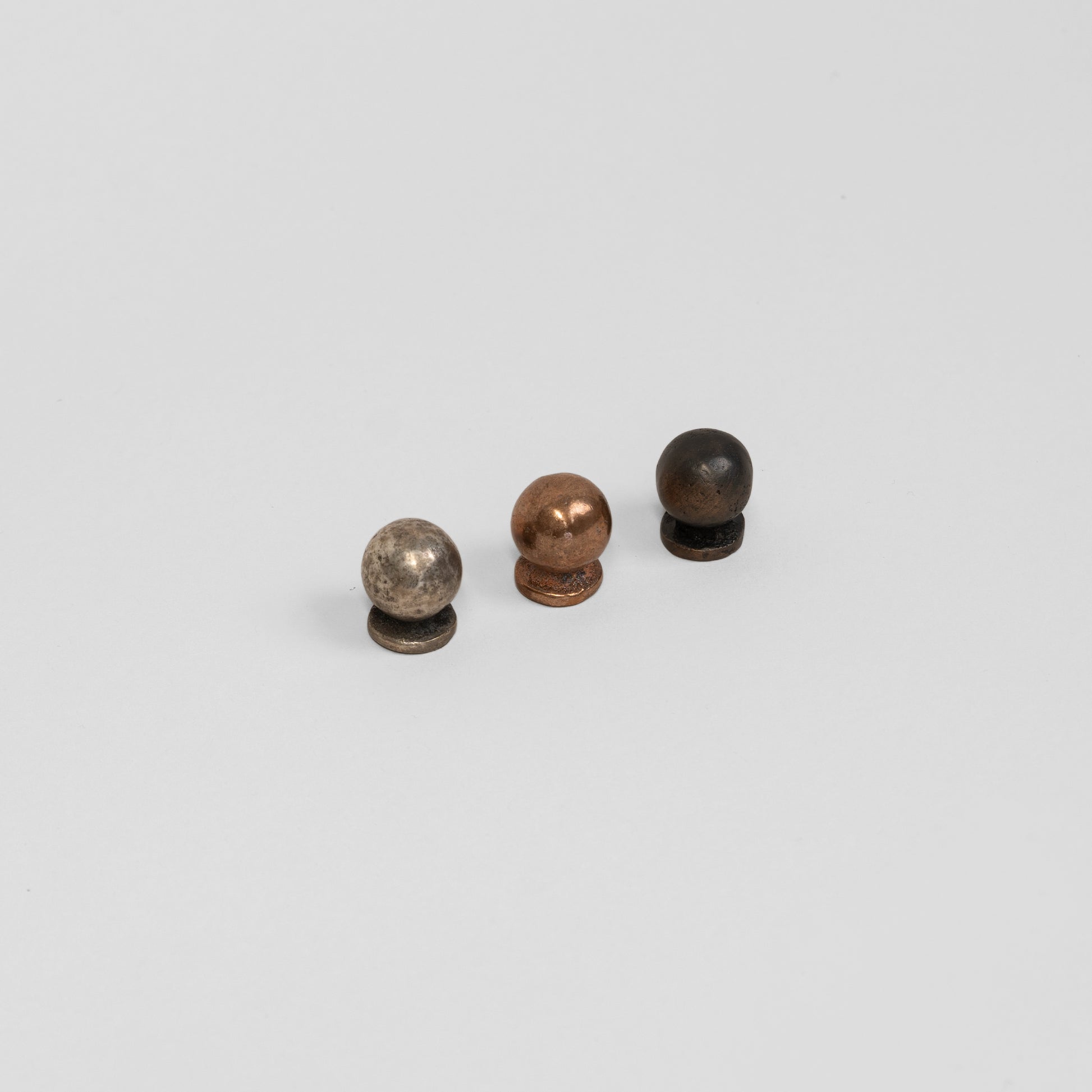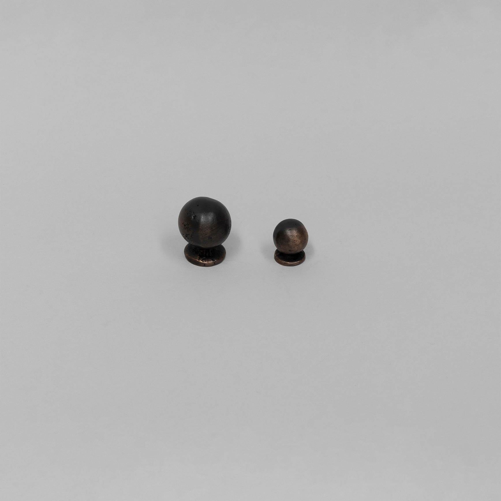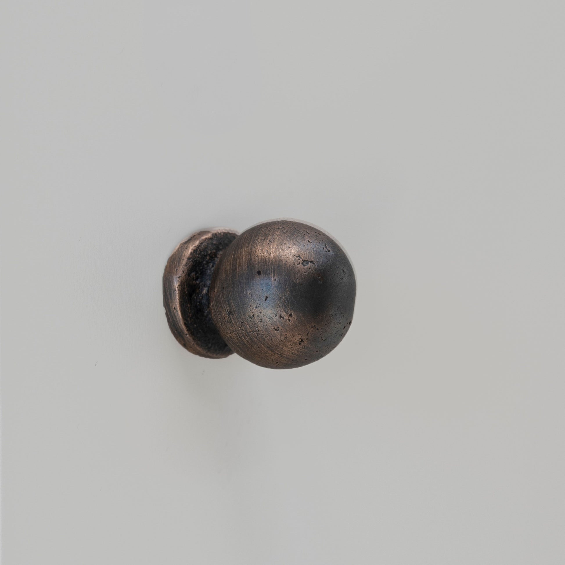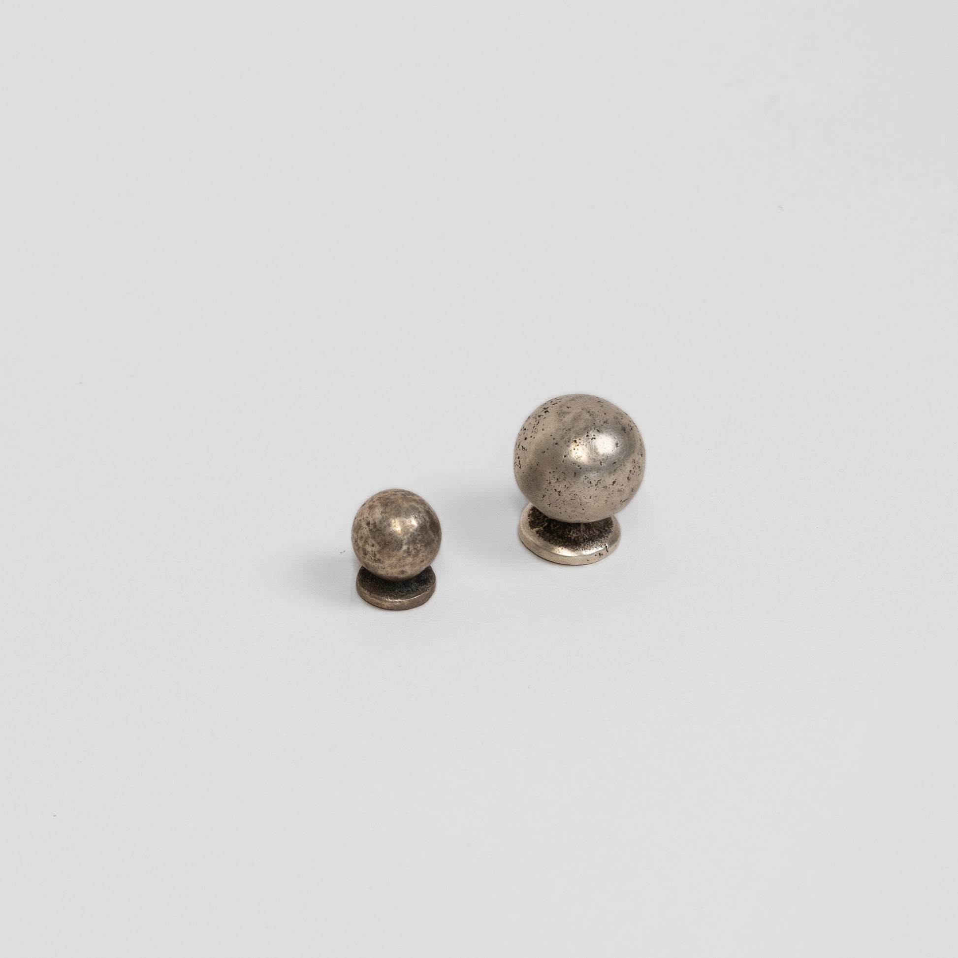 The Mae collection is crafted from solid bronze and feature a living finish. Although they do not patina as extensively as brass, they will naturally darken over time. Regular use may cause the finish to buff due to natural skin oils, resulting in a more pronounced sheen. This aging process is more evident on the Light Bronze finish and less noticeable on the Antique Bronze and Antique Silver finishes. To maintain the silver finish, a silver polish product may be used.
