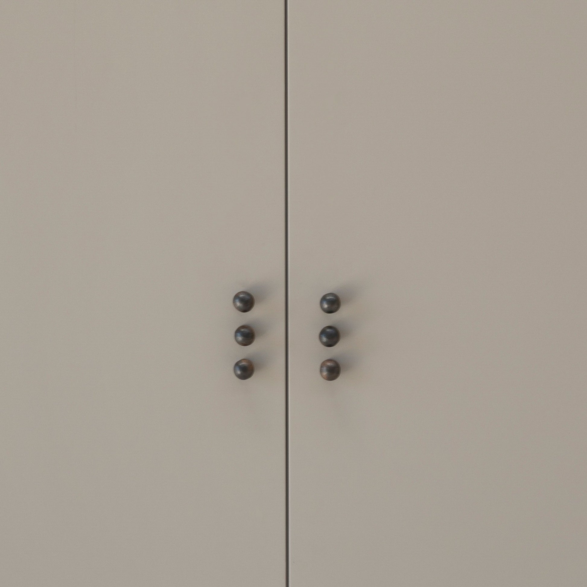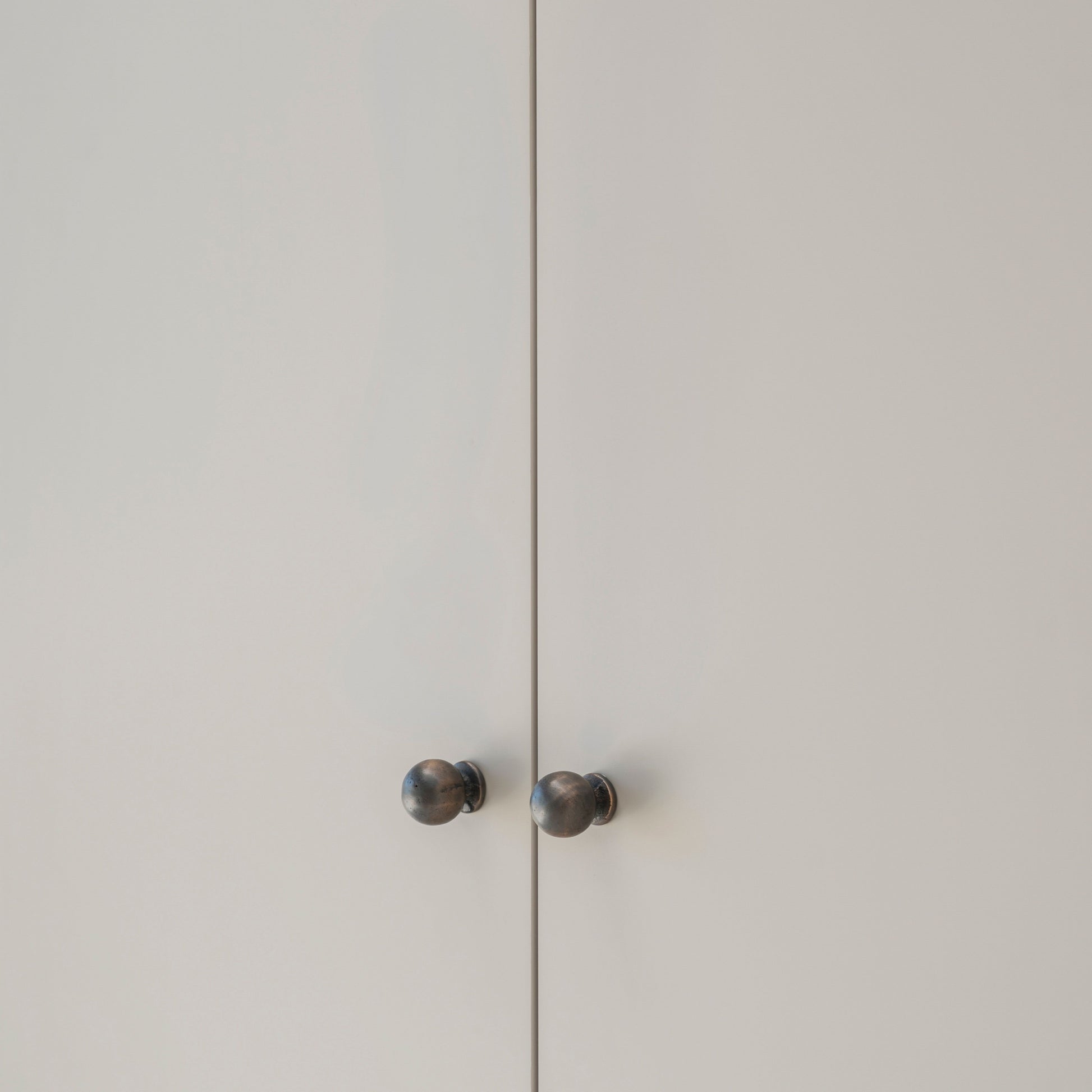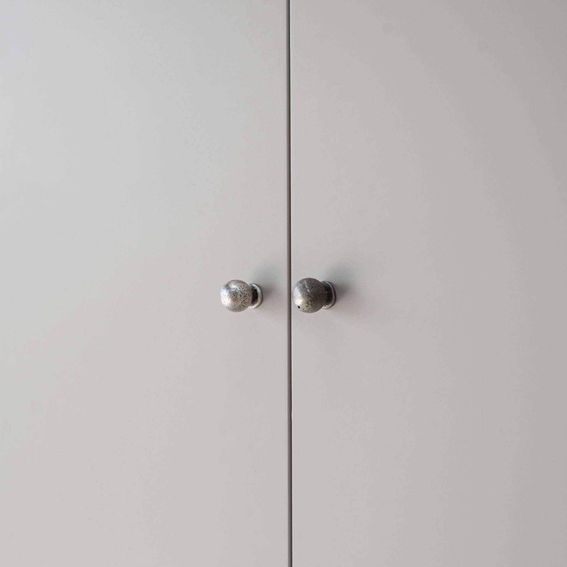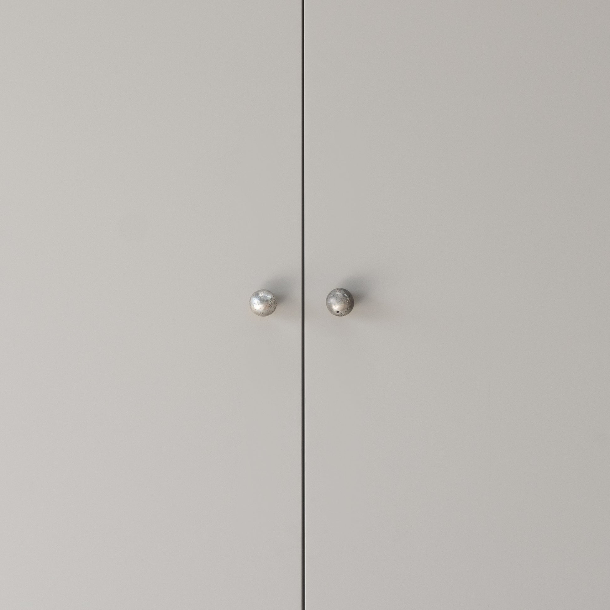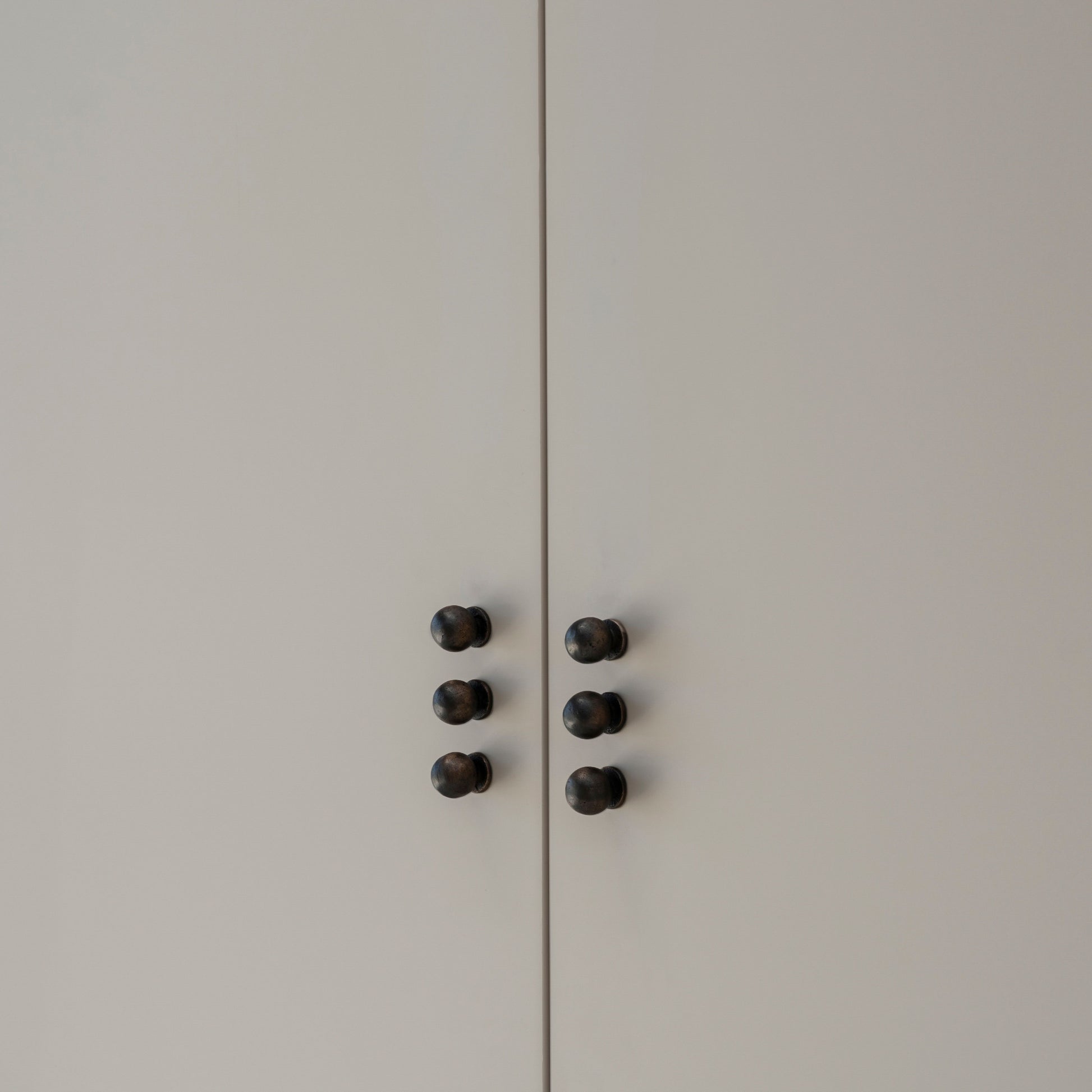 The Mae collection is crafted from solid bronze and feature a living finish. Although they do not patina as extensively as brass, they will naturally darken over time. Regular use may cause the finish to buff due to natural skin oils, resulting in a more pronounced sheen. This aging process is more evident on the Light Bronze finish and less noticeable on the Antique Bronze and Antique Silver finishes. To maintain the silver finish, a silver polish product may be used.