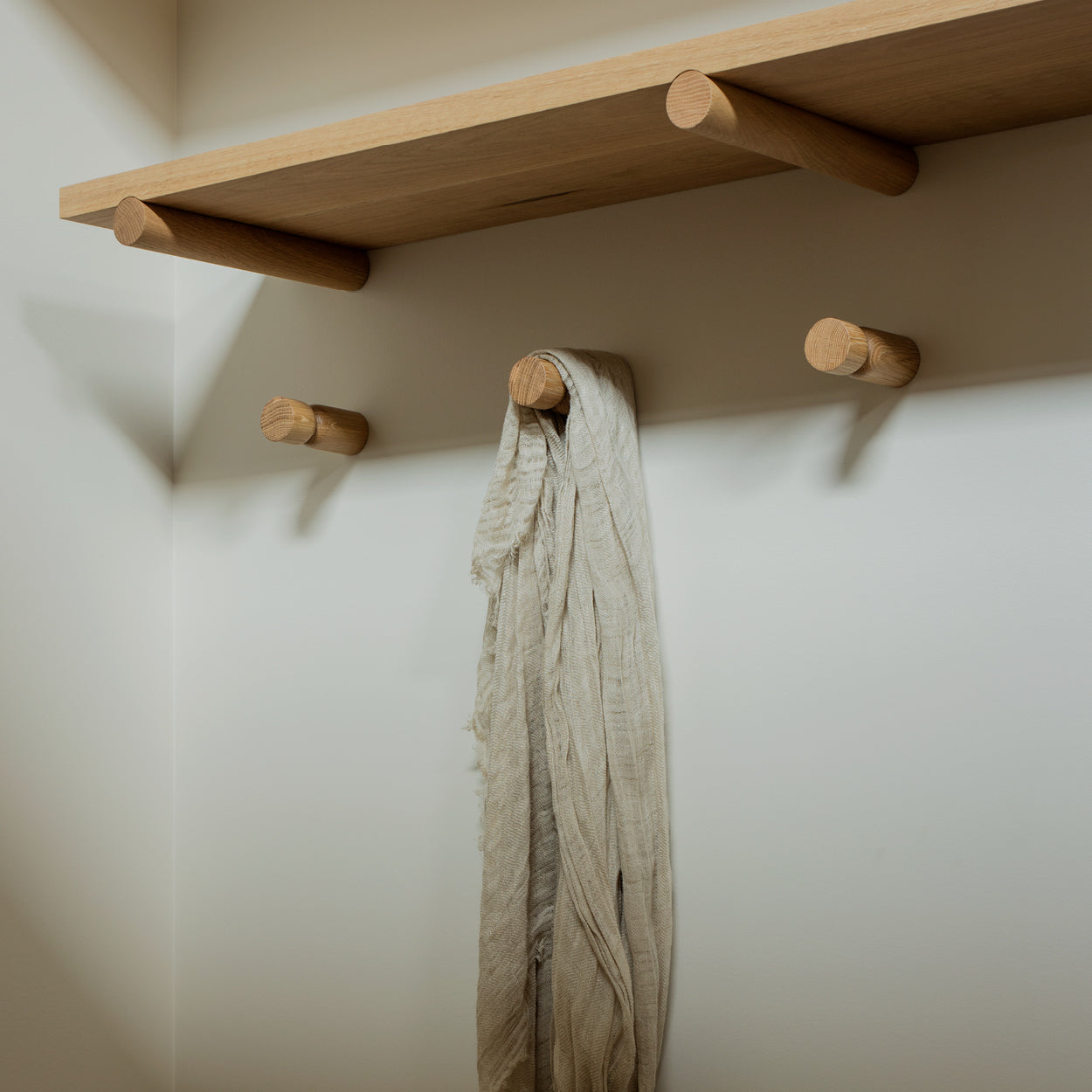 These turned solid timber hooks are made from American oak timber, available in various stain finishes or can be supplied raw allowing for you to finish with your choice of stain / lacquer. We do not recommend installing the raw hook without applying a coating, as it is unfinished.