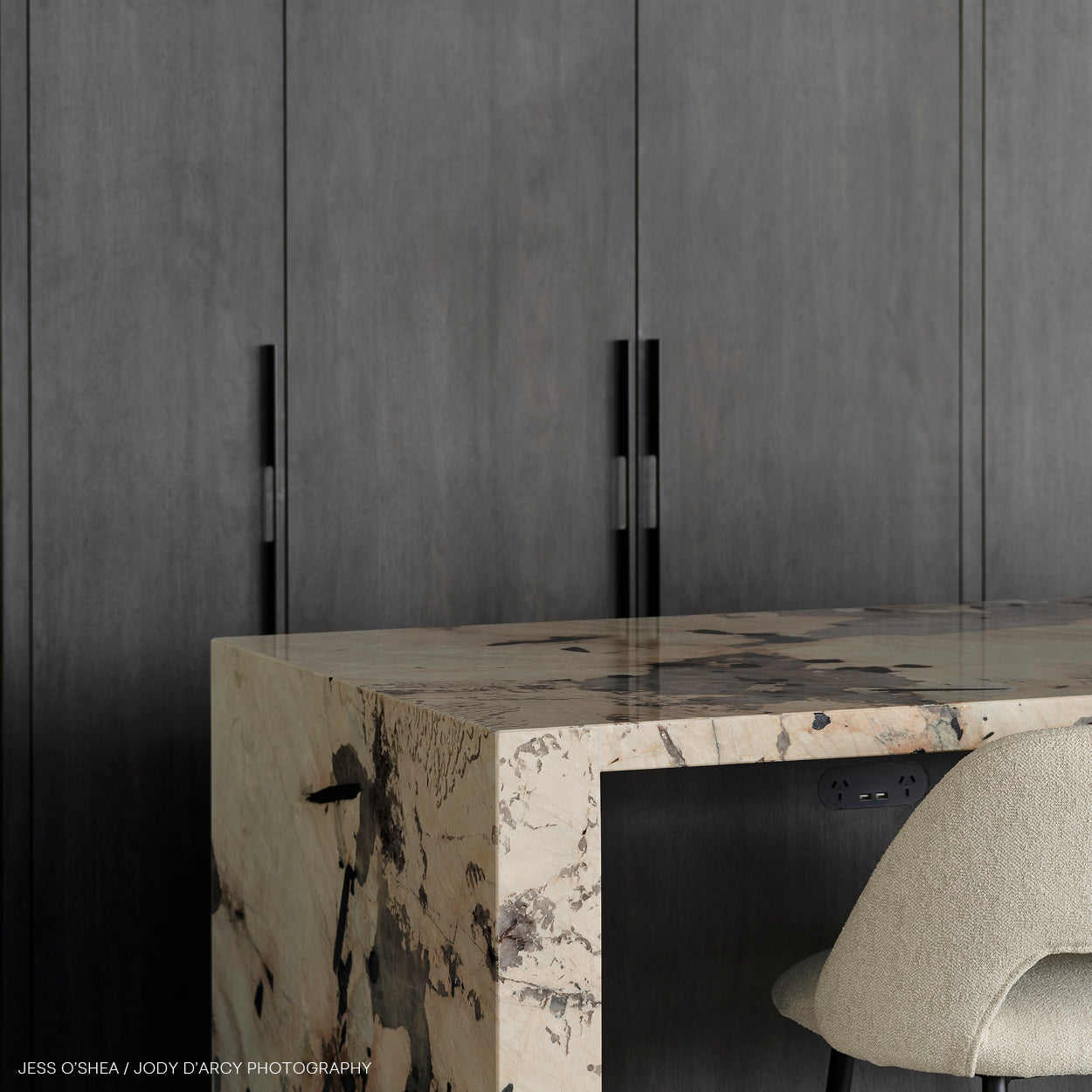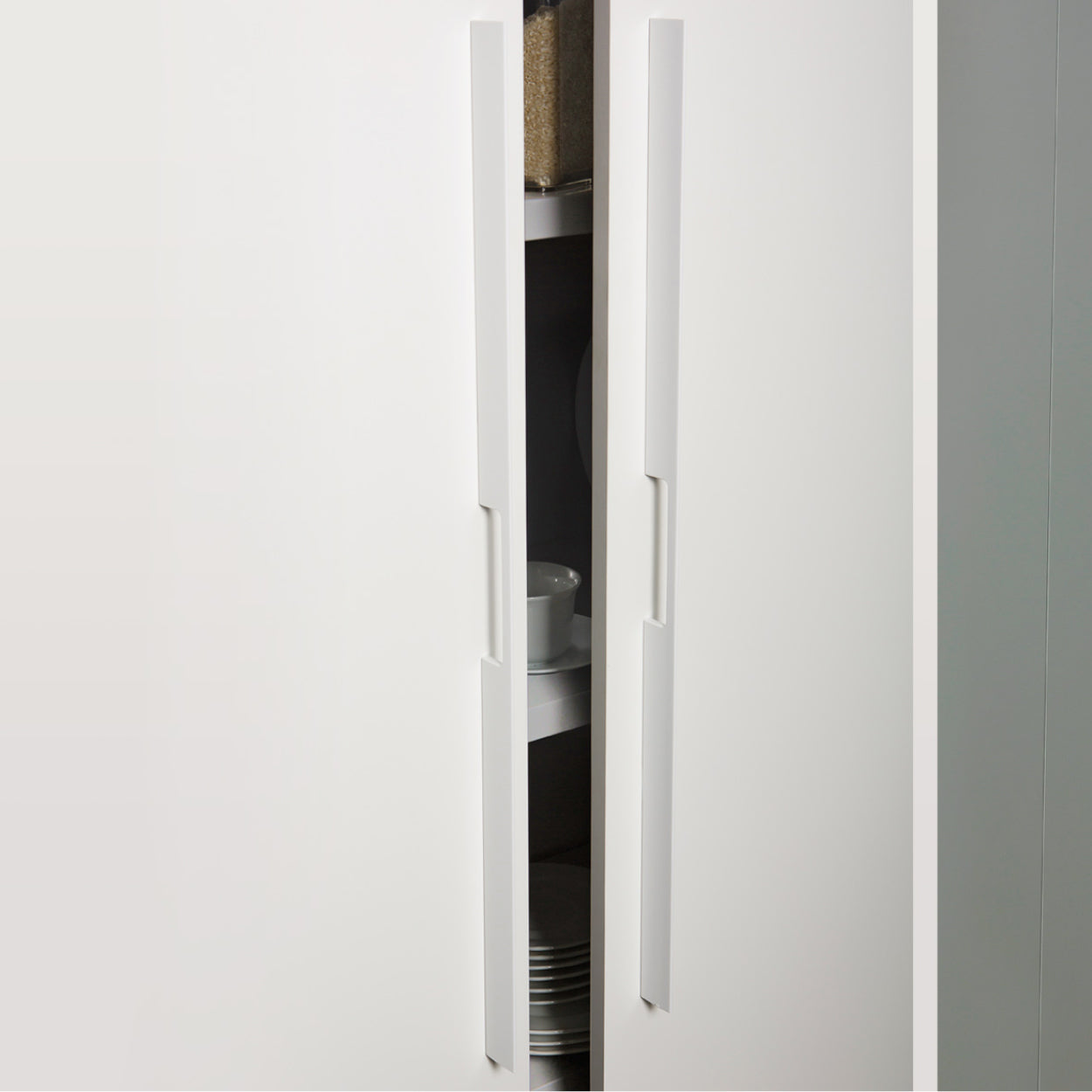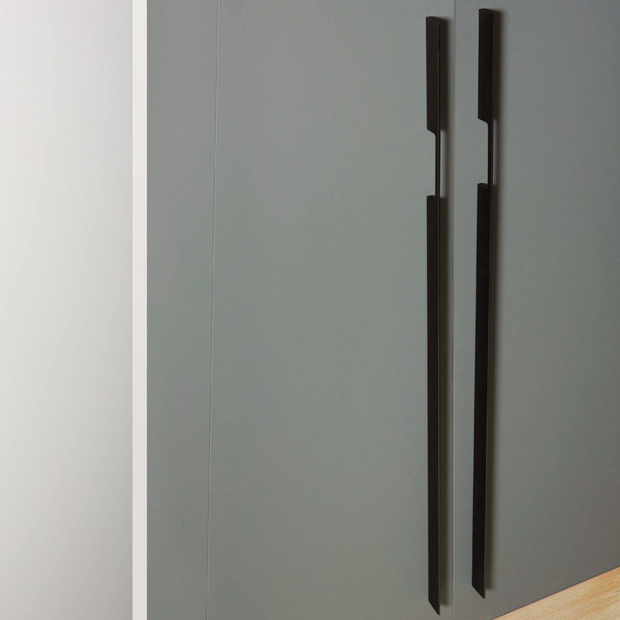 Peak is an aluminium handle with appearance and personality. It has a simple linear design and provides an added touch of functionality with contemporary appeal. It is available in brushed aluminium, matte black, matte white and new finishes metallic brown and metallic grey. The 1150mm handle displays an offset hand position.