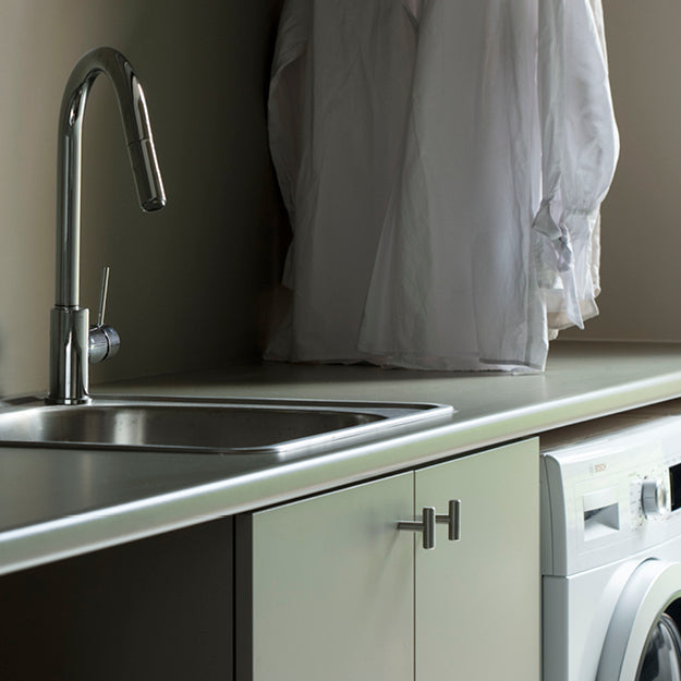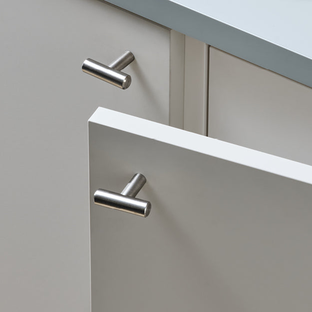 The Portal knob is a popular and timeless T bar design that proves to be not only functional but stylish on any contemporary cabinetry. Currently available in satin stainless steel, powdercoat matte white and matte black, and NEW medium bronze finish.