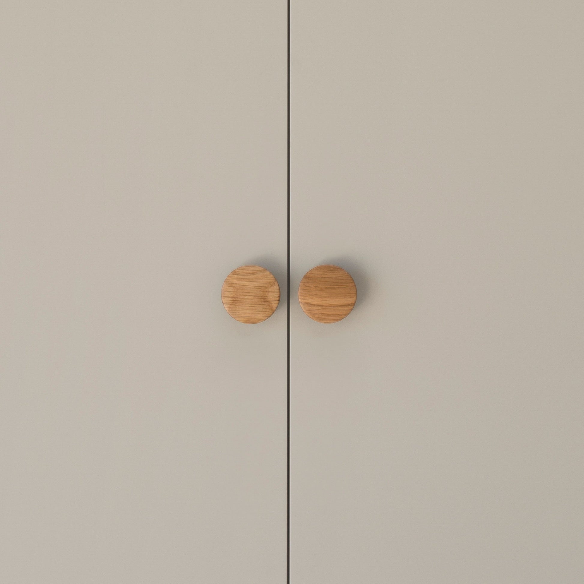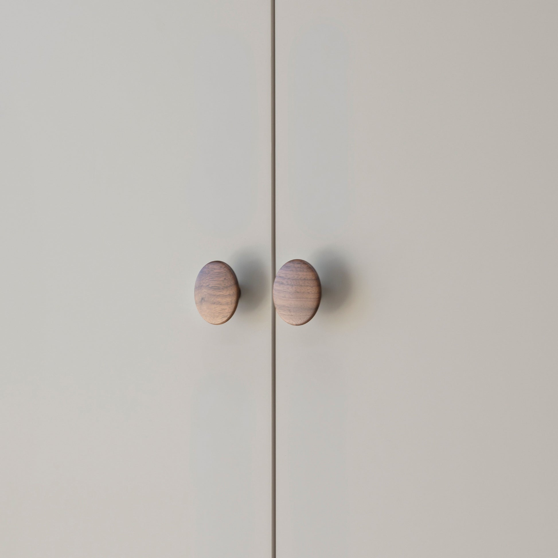 If you're looking for a round timber knob to pair with your selected timber handle, the Rondo knob is what you need! Available in 48mm and 64mm diameters, and in oak, black stain and walnut finishes.