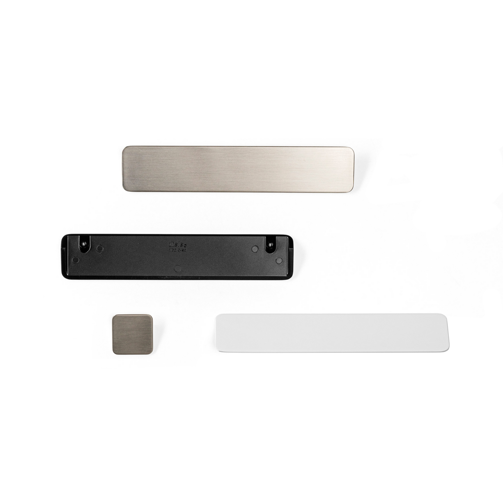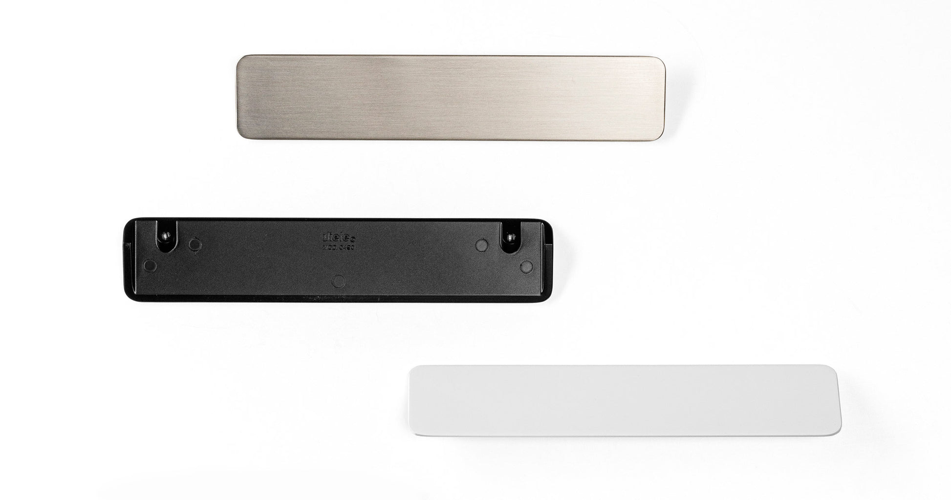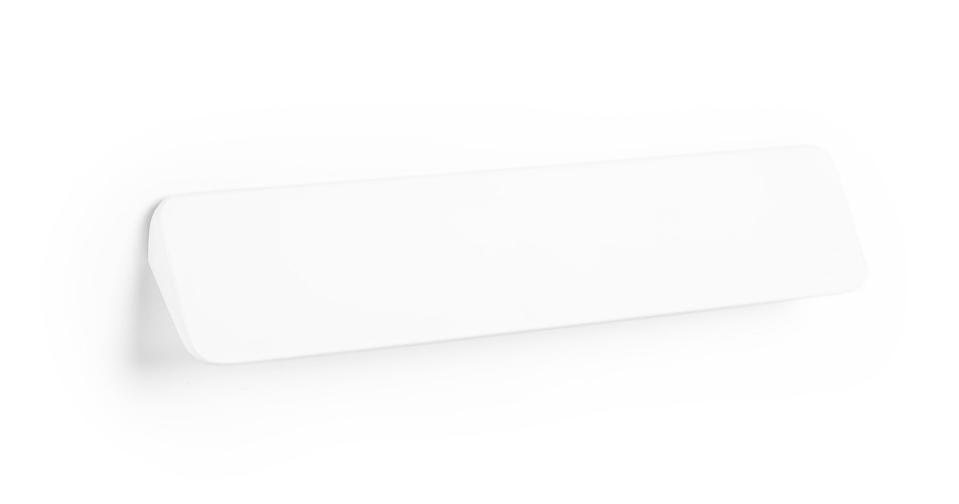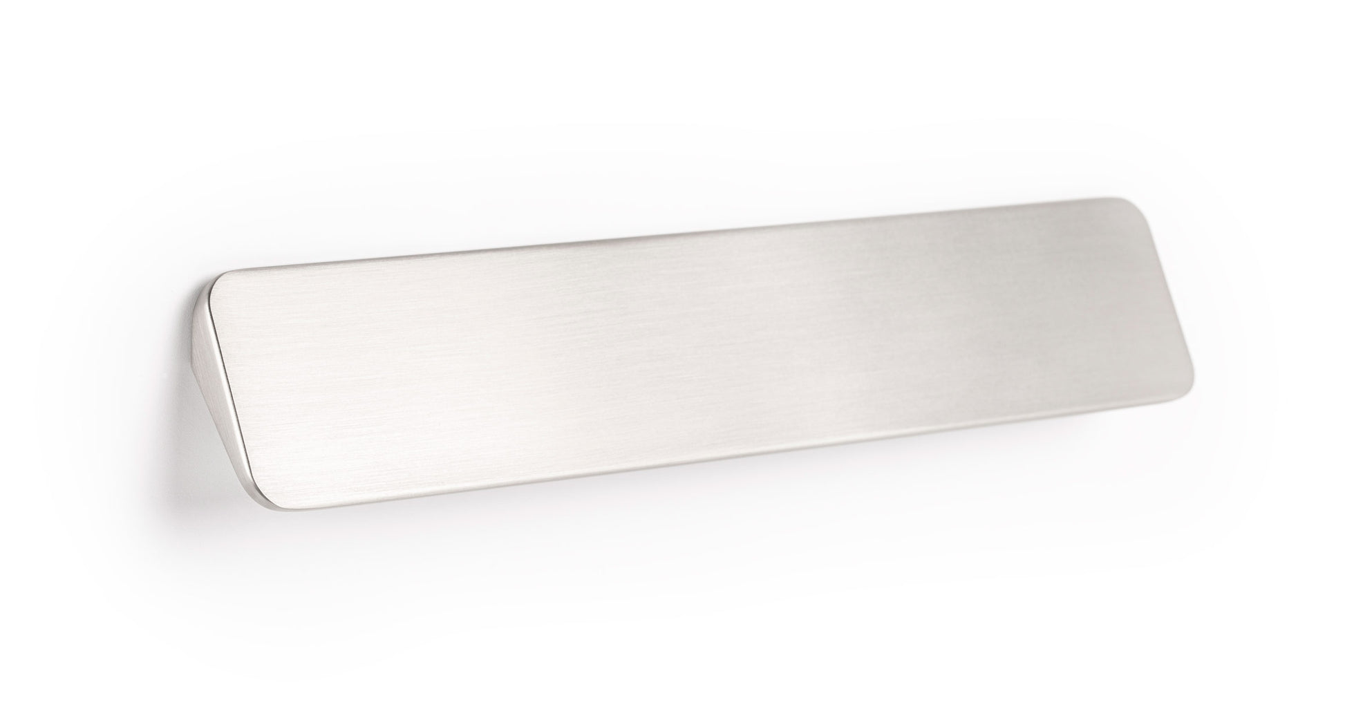 Shift has a triangular profile and a smooth, flat surface. The Shift handle and knob duo are available in three finishes; brushed nickel, matte white and matte black.